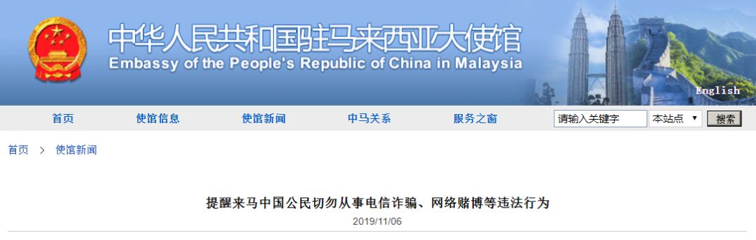 11月6日,中国驻马来西亚大使馆刚刚发布了一则公告,提醒在马来西亚的中国公民“切勿从事电信诈骗”。