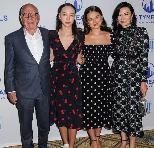 在今天的”全家福”合影中,邓文迪身穿一袭黑色印花长裙,典型的女神风范,气场十足。而在站在她和默克多之间的,分别是18岁的大女儿格蕾丝和16岁小女儿克洛伊。小女儿克洛伊穿的是运动鞋,大女儿格蕾丝则像邓文迪一样穿着黑色高跟鞋。