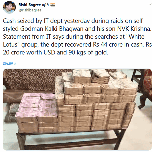 10月22日,印度的《经济时报》报道了一则新闻,印度税务部门在动用了200多人进行了6天的搜索后,在一位著名的“灵修大师”家里搜查到了超过60亿卢比的未披露收入。
