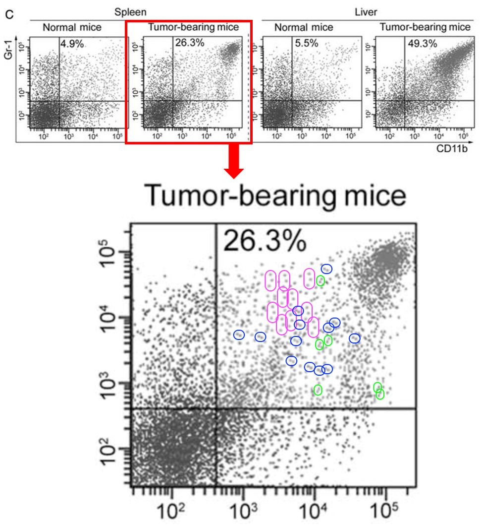 该论文Fig. 4几组流式细胞仪检测组疑似存在相似。图片来源:PubPeer和原始论文。