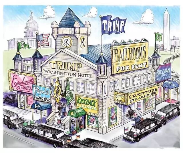 “现在这就是华盛顿的标准操作程序,这等同于一整天的付费游戏,” 拉斯金说,”不仅政治团体和竞选组织试图与总统取得联系,而且至少还有179个外国政府,企业,贸易协会和宗教实体也经常光顾特朗普的财产。 “