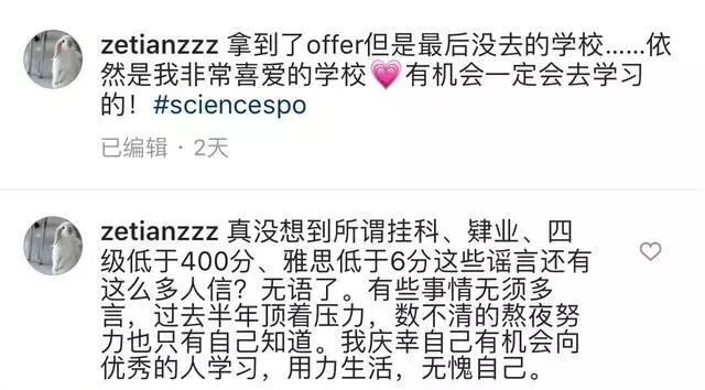 尽管已经澄清了自己并非”不读书”,但自那之后,章泽天就几乎不在社交网站上更新自己的动态了,最近的一条也是在三周多以前发布的,行事也更加低调了。