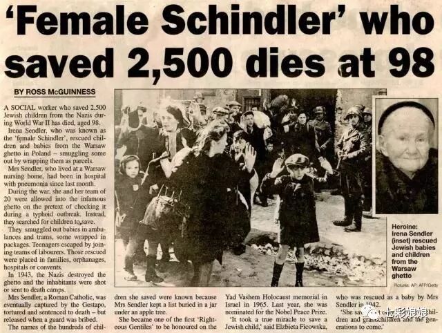 2008年5月12日,时年98岁的艾琳娜·森德勒在波兰安静地走完了自己的一生。当时的媒体,将她称为“女辛德勒”。