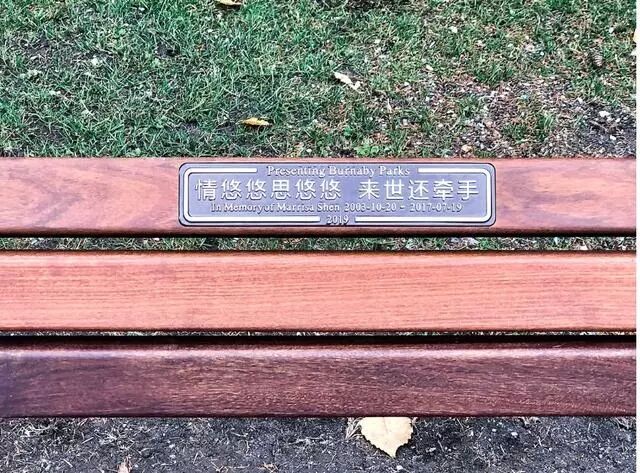 据加拿大媒体昨日(11月8日)报道,近日加拿大本拿比中央公园新添置了一把纪念长椅,旨在纪念于2017年不幸遇害的华裔少女申小雨(Marrisa Shen 英文名)。