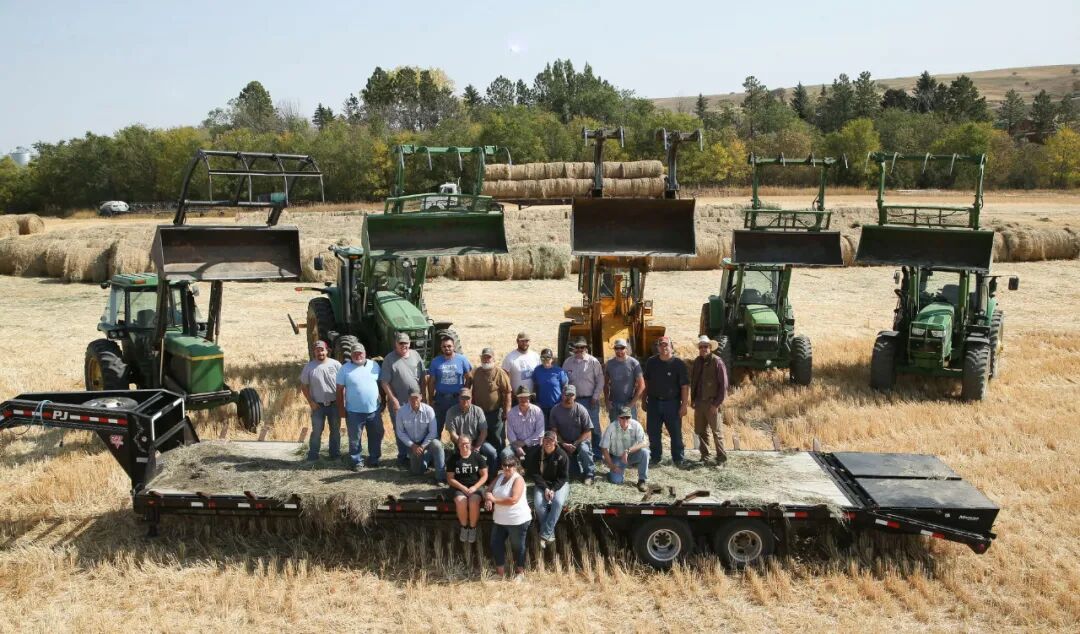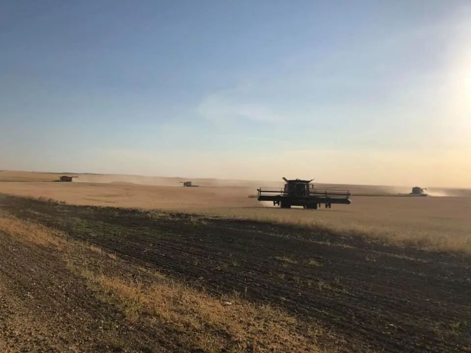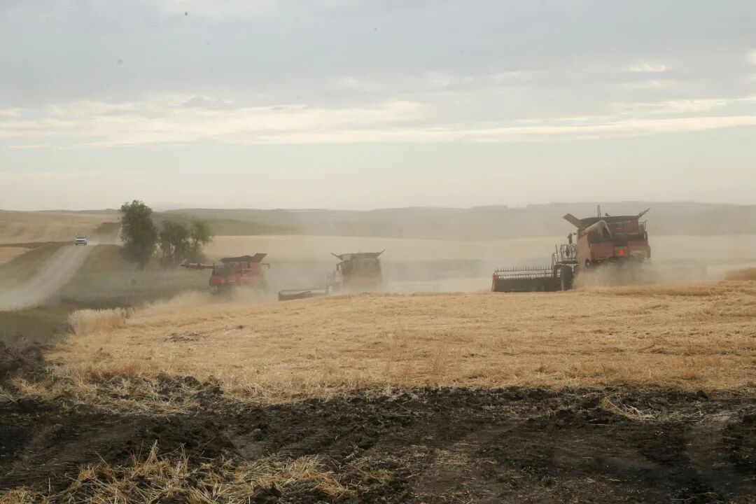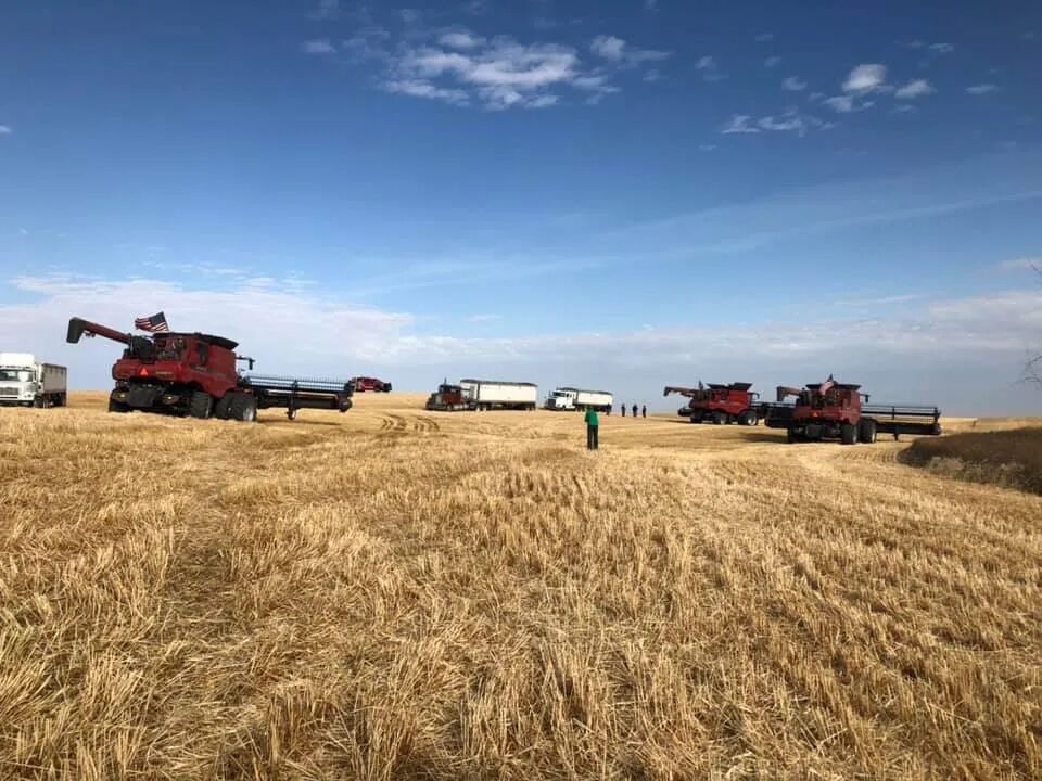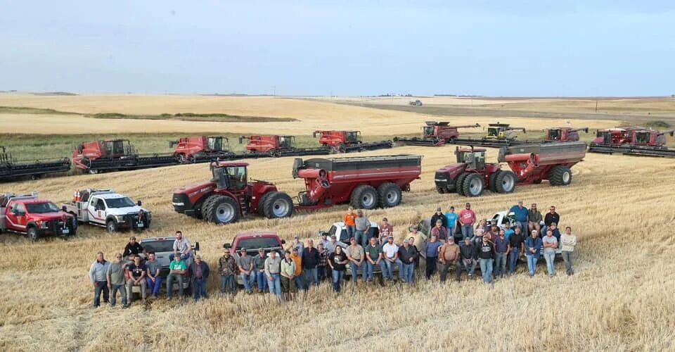 9月11日,一共有60个农民各自带着设备从四面八方浩浩荡荡来到恩赫姆先生的土地上,最远的农民来自30英里之外。他们带来了11台联合收割机,6台谷物推车和15辆敞篷卡车,大家一起开始收割。