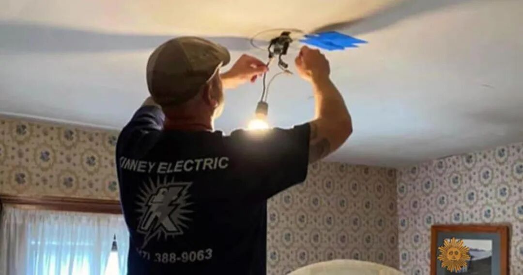 有一天,她天花板上的灯坏了,她不得不找人来修。她从邻居那里找来一个本地的电工约翰·金尼(John Kinney)的电话。