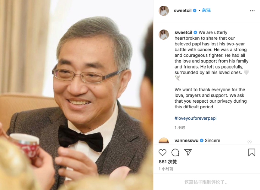 而在父亲去世前3天前,她才刚刚晒出全家福。