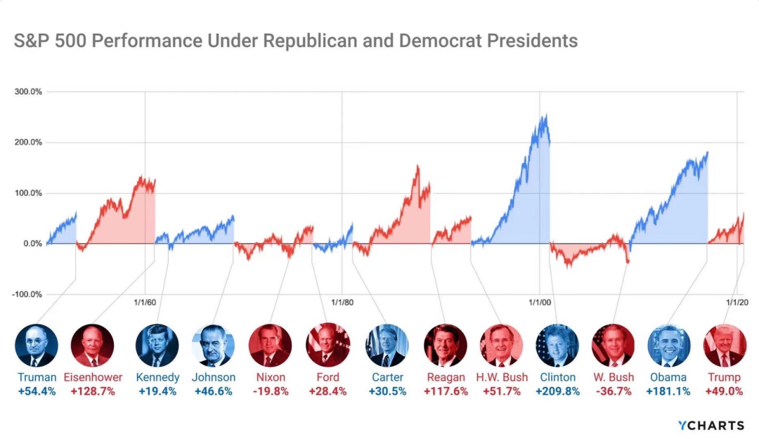这张是标普500在民主党和共和党总统下的表现。