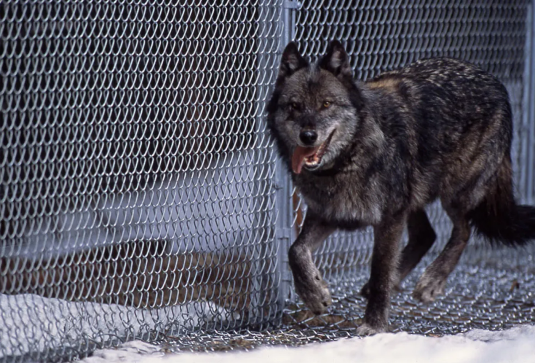 被关在围栏里的9号狼。(图片来自黄石国家公园网站)