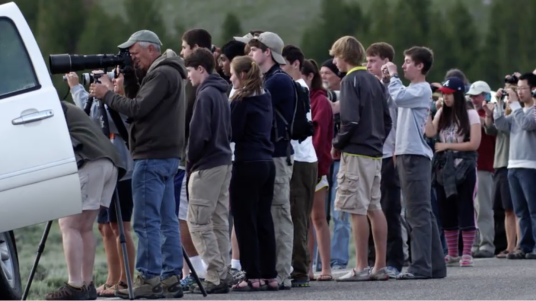 黄石公园观狼的人群。(pbslearningmedia.org视频截屏)