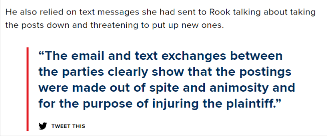 法官说:这些帖子是恶意的,重重的伤害了原告(前男友)。姑娘我得让你狠狠的赔!