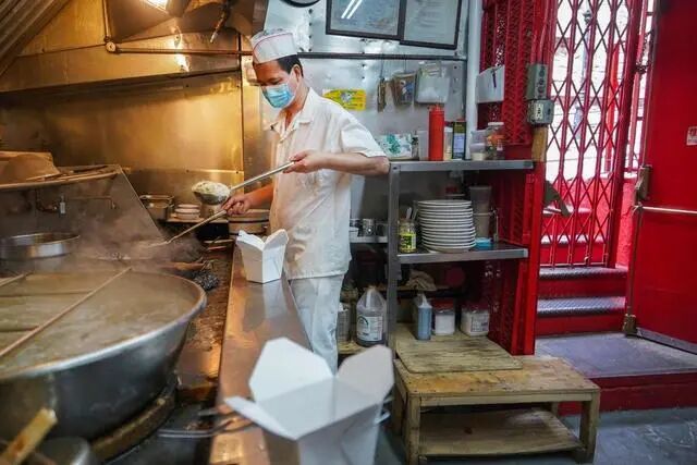 根据点评网站(Yelp)的数据,近三分之一的唐人街餐厅只收现金,而且大多数餐厅因为不想花钱而避开了外卖应用。他们习惯于依赖大批量、低价格菜品的商业模式,比如为当地居民和工人提供7美元一份(50人民币)的面汤