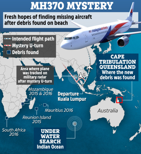据英国太阳报报道,在澳大利亚海滩上发现了飞机残骸,这给解开 失踪的马来西亚航空公司MH370航班之谜带来了新的希望。