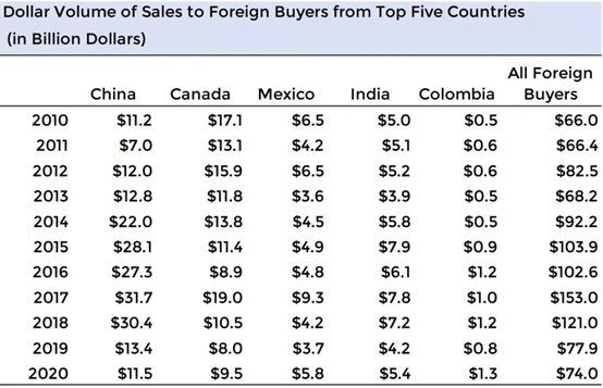 报告显示,虽然从成交量来看,海外买家总体的购买金额比前一年下降了5%,并且连续四年都在下降,但中国买家仍然是所有海外买家中的主力军。