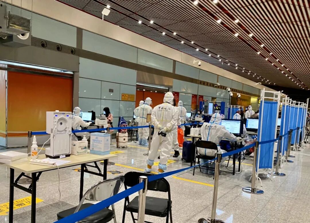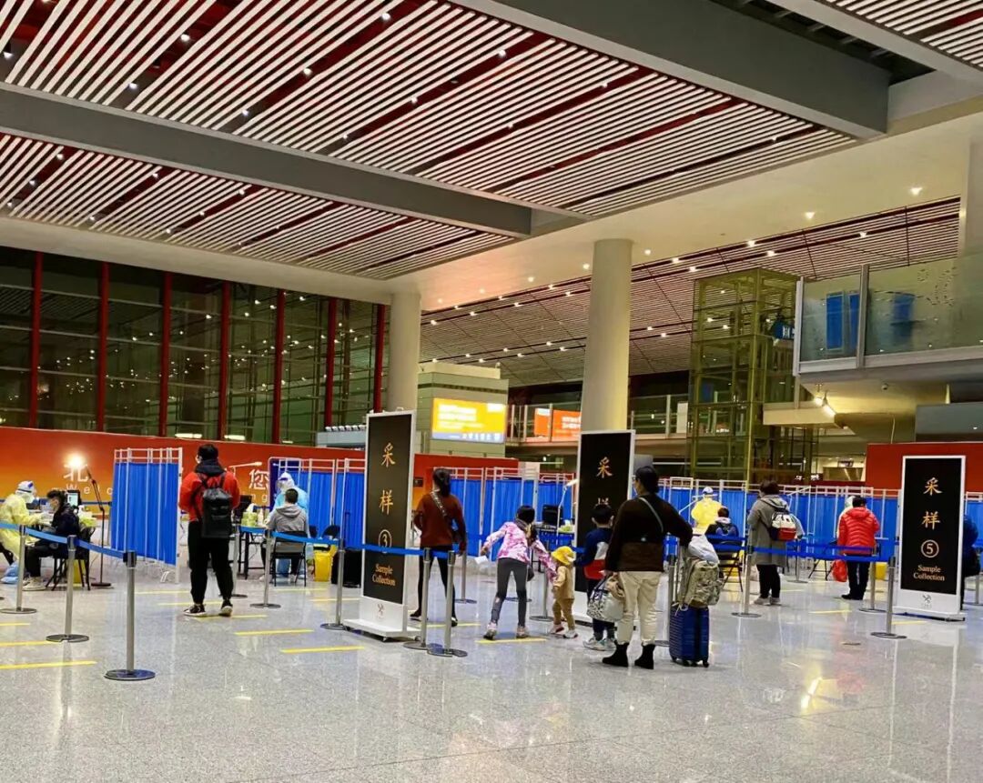 第一关,申报健康码,首先出示在多伦多机场生成并截屏的个人二维码,然后再重新填报信息生成新的二维码。第二关,核酸检测,出示新的二维码,在电脑上回答所有问题并签字后做咽拭子和鼻拭子检测。第三关,入境,将新二维码和护照呈上,两个工作人员认真查看护照,几乎是一页一页的翻看,不时用放大镜看看,在页码边缘的亮光处,用手指擦擦蹭蹭,还表现出疑惑的表情,难道护照有问题?绝对不会,多年来它陪我走过世界的多个地方,从来没有如此过。第四关,取行李转乘大巴车。行李大片的摆放在大厅里,自己找,然后放在一个传输带上,传输到行李专用车上,传输带较高,行李较沉,我费了好大的劲才放上去。人们上大巴后,同样没人搭理,去哪里?不知道。