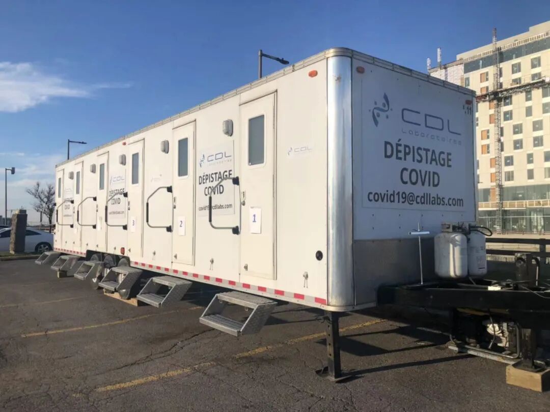 11月9日上午,女儿开车陪我前往靠近蒙特利尔市区的检测机构做双检测。非常棒,为了配合国人回国要求,检测机构在一个空旷的停车场上建立了临时检测点,是一辆移动医疗车,有6个检测房间,因为是预约,工作人员核对信息后,带入一个房间,房间很小,紧凑的摆放着一床一桌一椅,医生非常和蔼,先是鼻拭子,再是抽血,不一会儿两项检测就做完了,告诉我明天上午出结果。